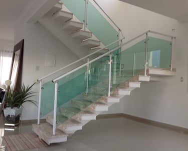 Além da estética, o corrimão de vidro proporciona transparência e amplitude, permitindo maior entrada de luz e sensação de espaço aberto. Fabricado em vidro temperado ou laminado, oferece alta resistência e segurança, atendendo às normas técnicas e suportando impactos sem perder sua durabilidade.